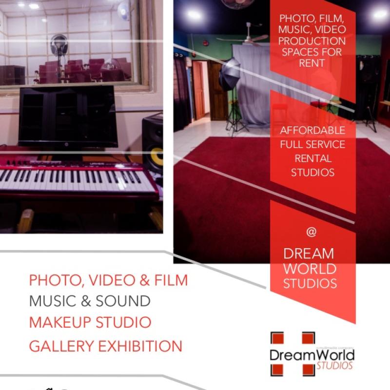 Dreamworld studios boasts of Complete Sound and PA Systems, Projectors, Screen Video/TV system/DVD player Comfortable Conference Chairs and Tables Video and Audio Recording. Photo Studio Music and Sound Studio Make-Up Studio. We do full multimedia; pictures, video and audio production and we have a spaces up for rent at affordable prices.
